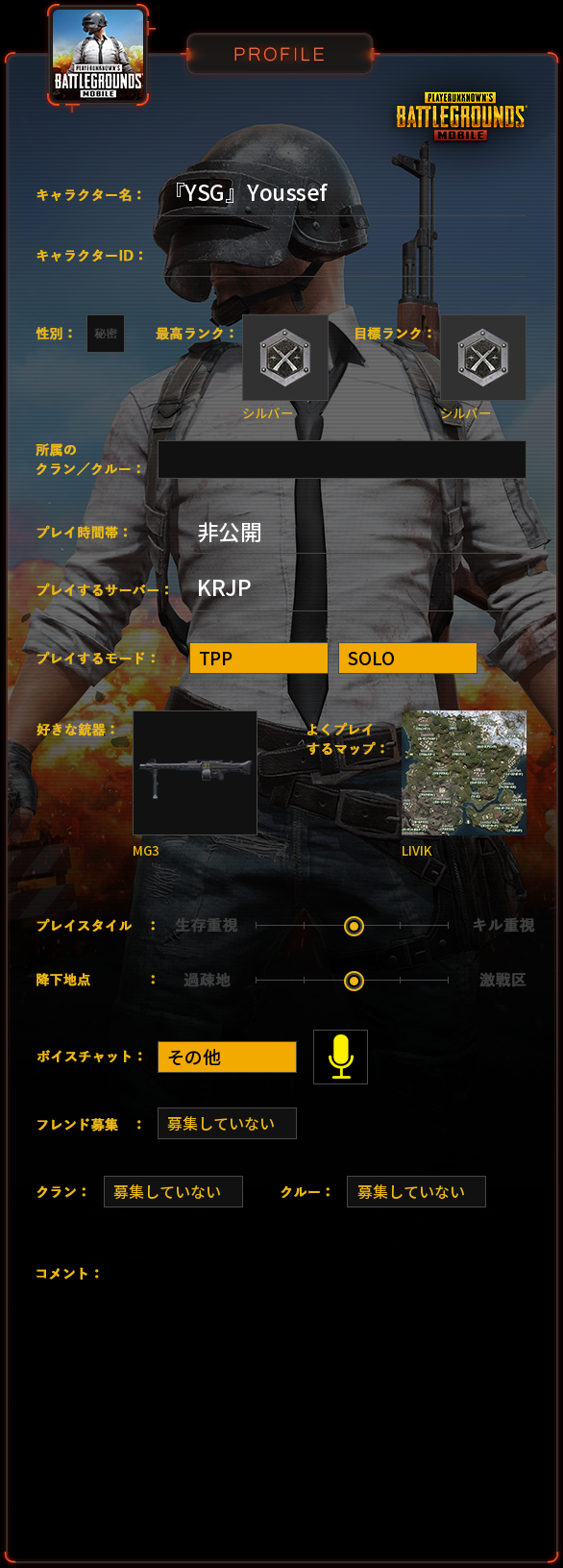 PUBG MOBILE プロフィール