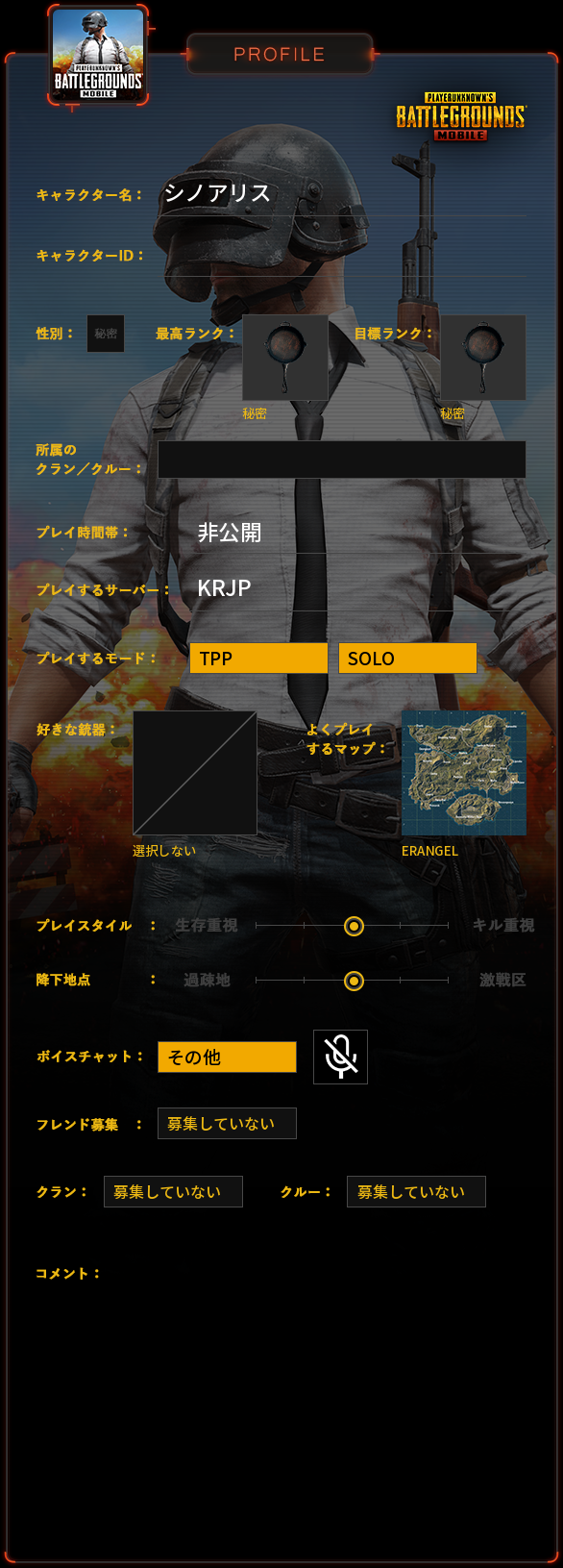 PUBG MOBILE プロフィール