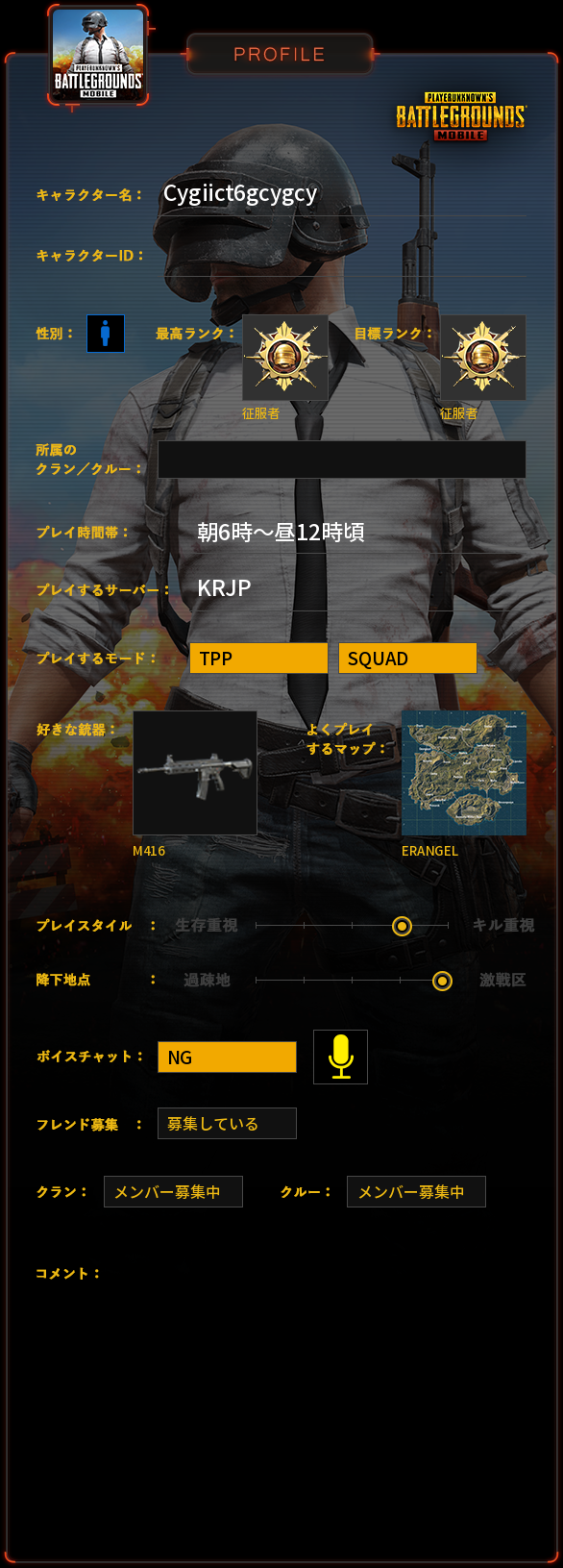 PUBG MOBILE プロフィール