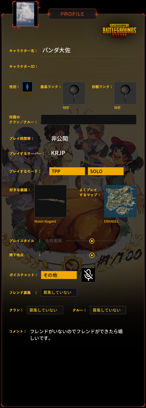 PUBG MOBILE プロフィール