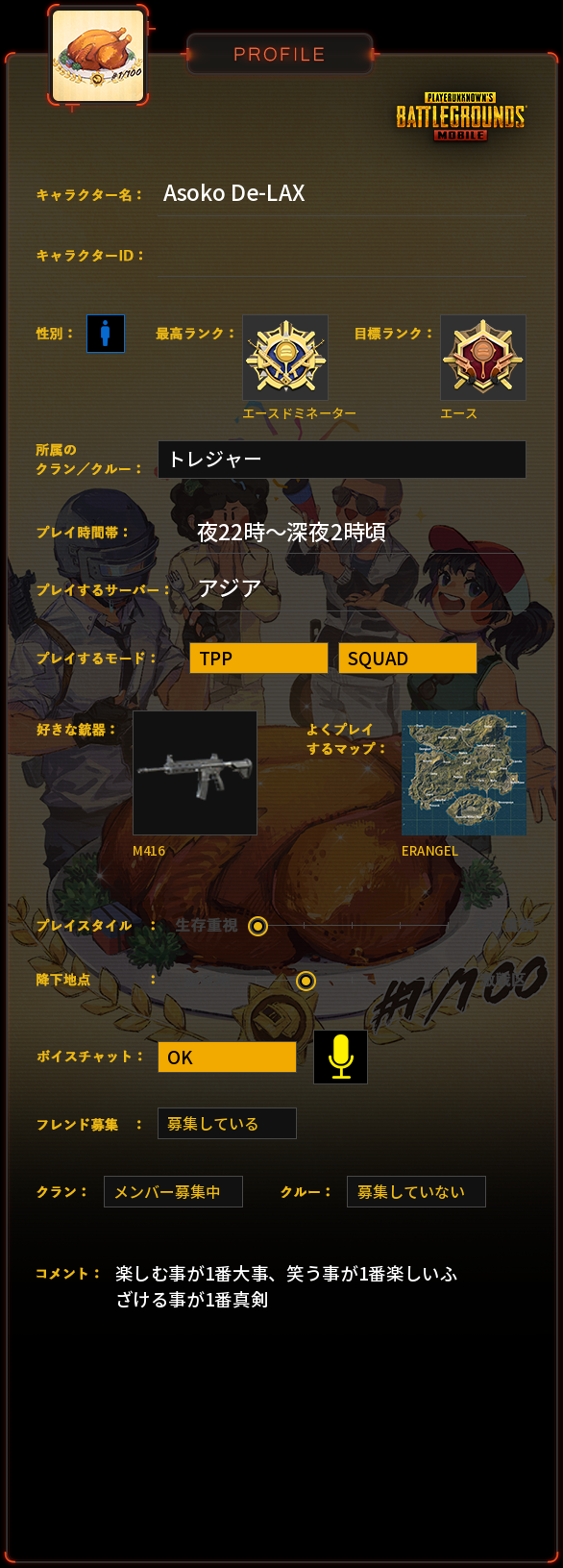 PUBG MOBILE プロフィール
