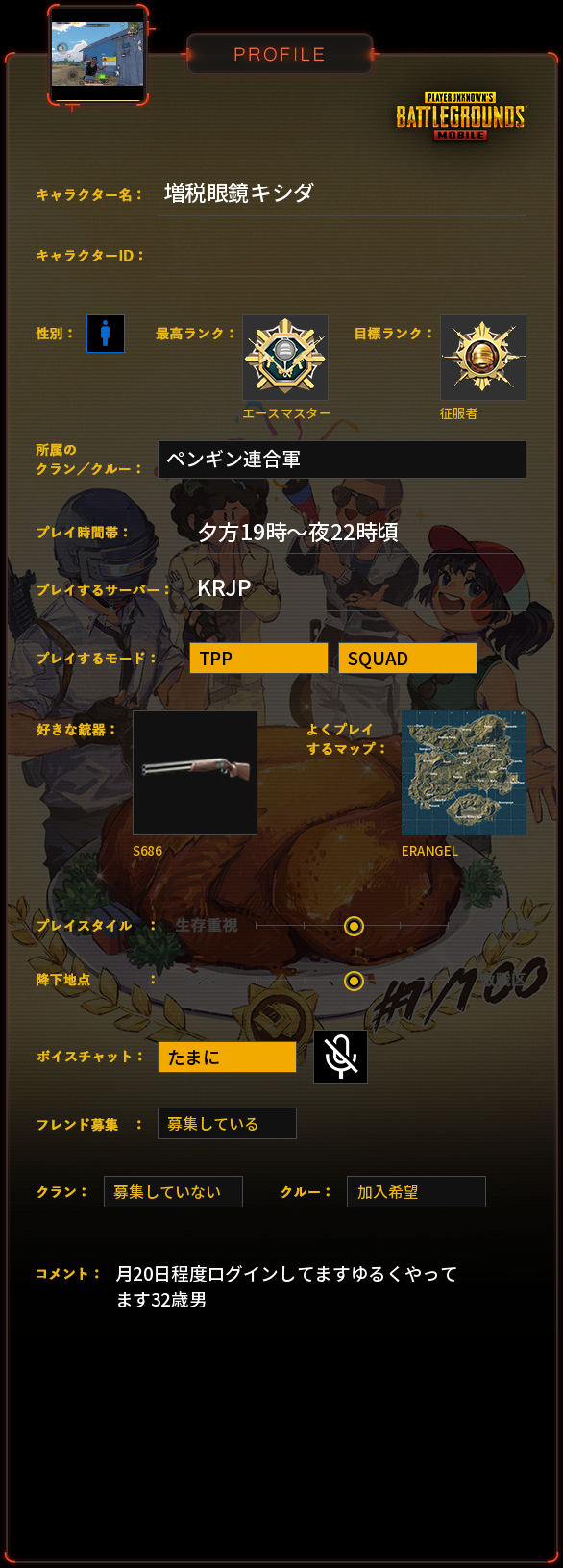 PUBG MOBILE プロフィール