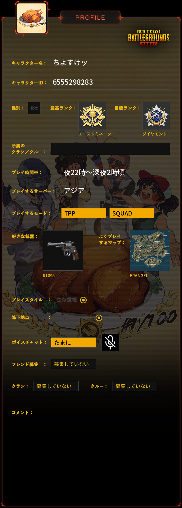 PUBG MOBILE プロフィール