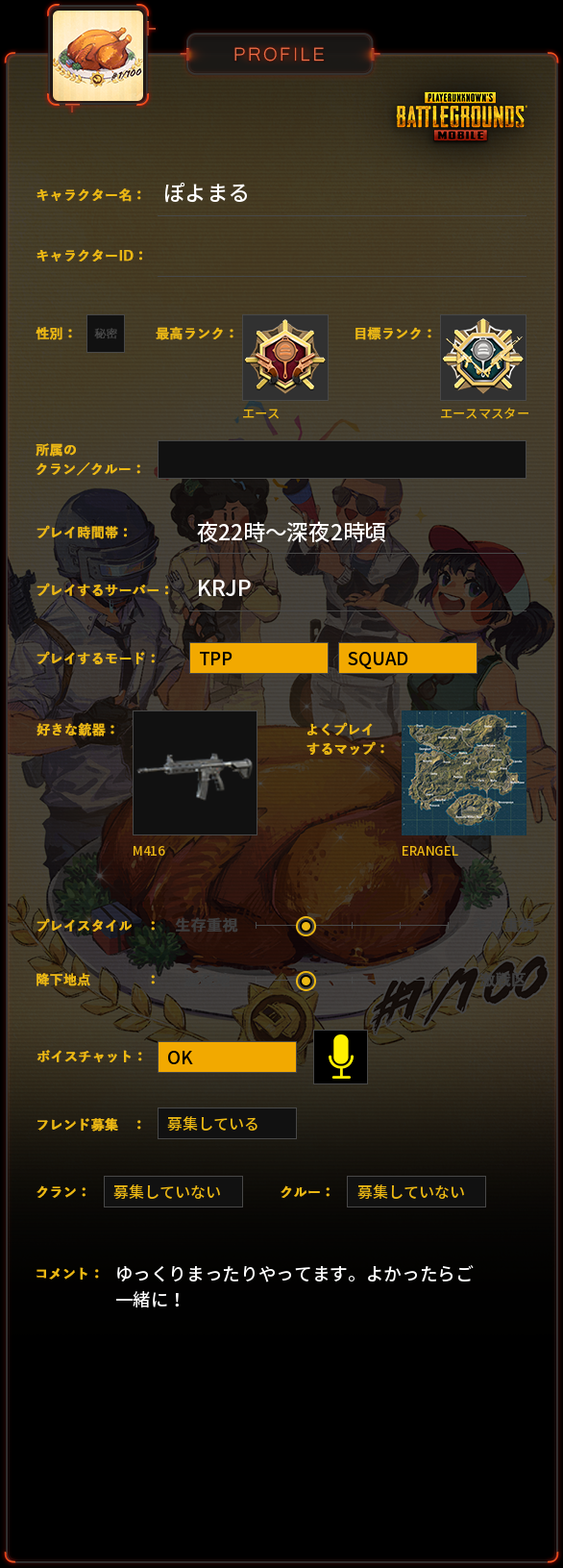 PUBG MOBILE プロフィール