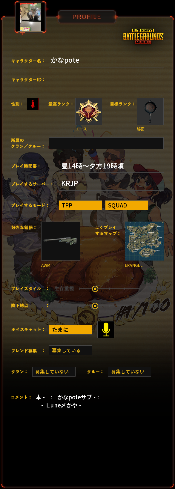 PUBG MOBILE プロフィール