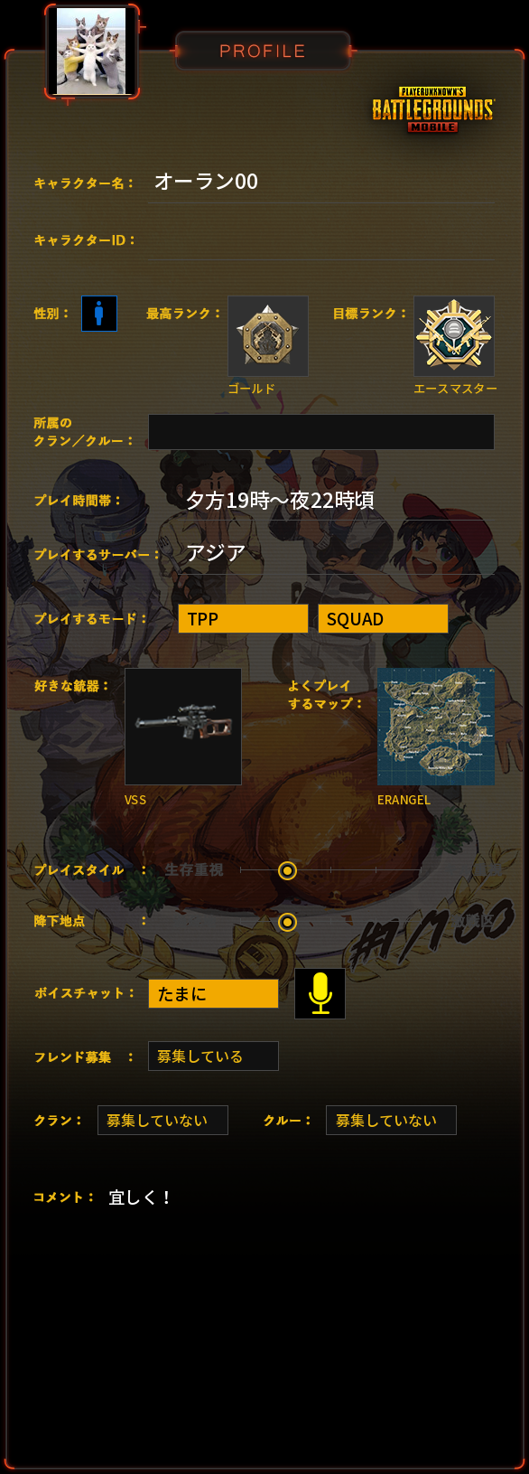 PUBG MOBILE プロフィール