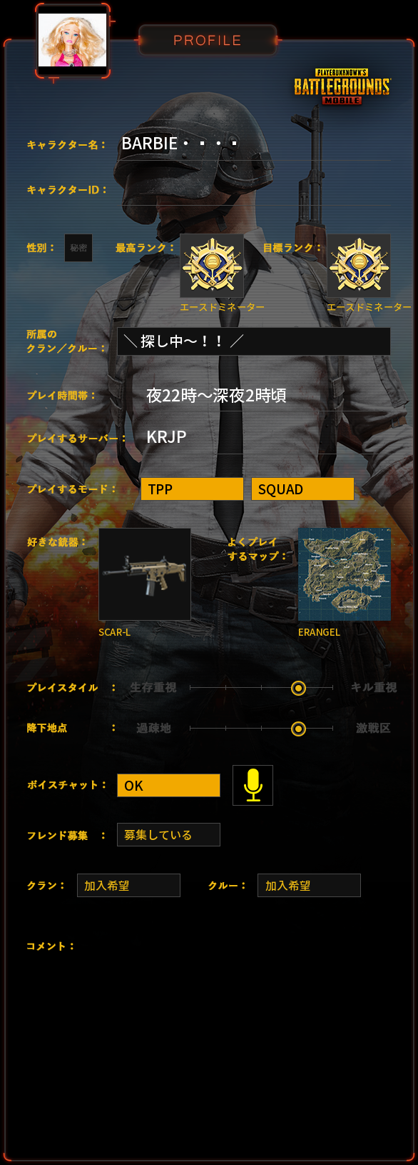 PUBG MOBILE プロフィール