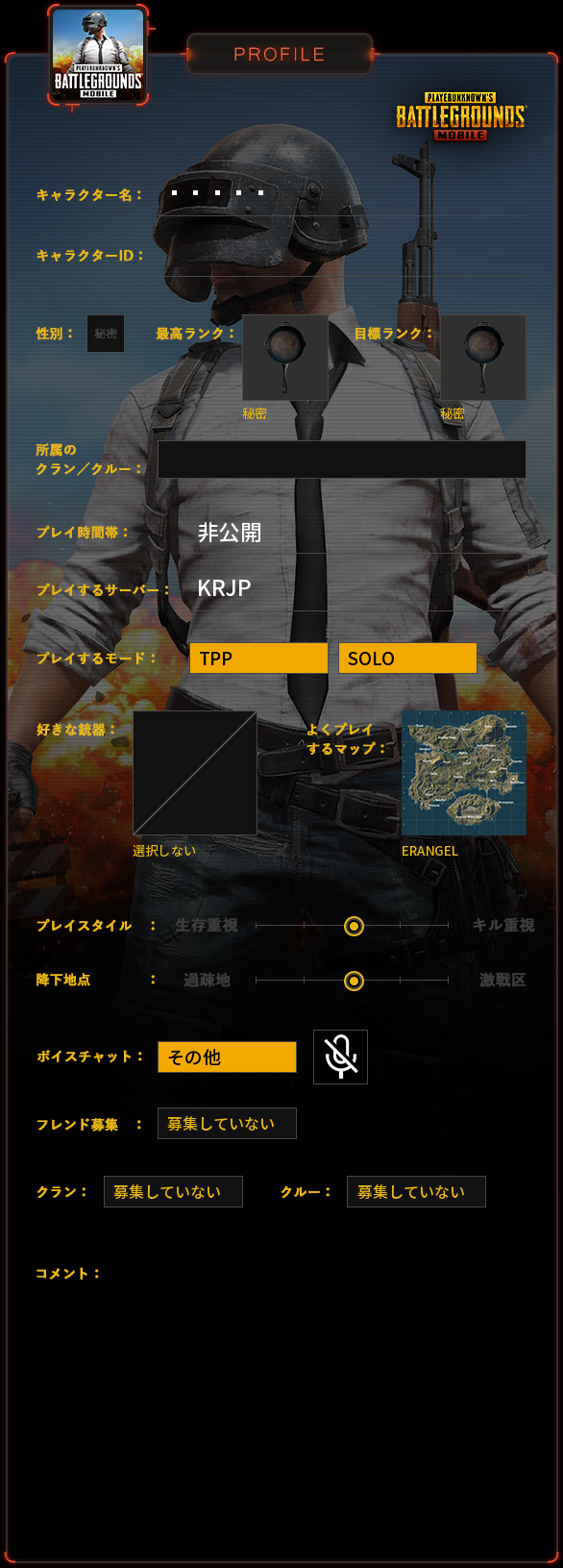 PUBG MOBILE プロフィール