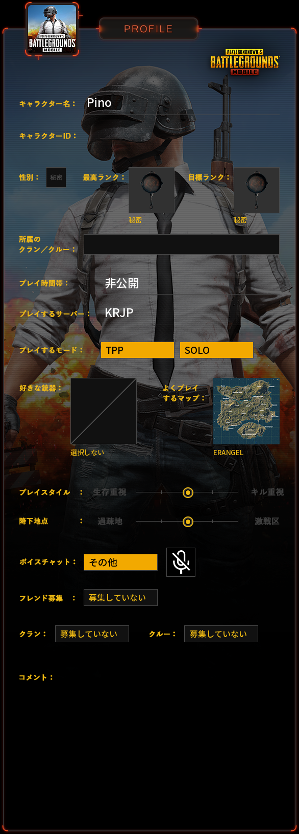 PUBG MOBILE プロフィール