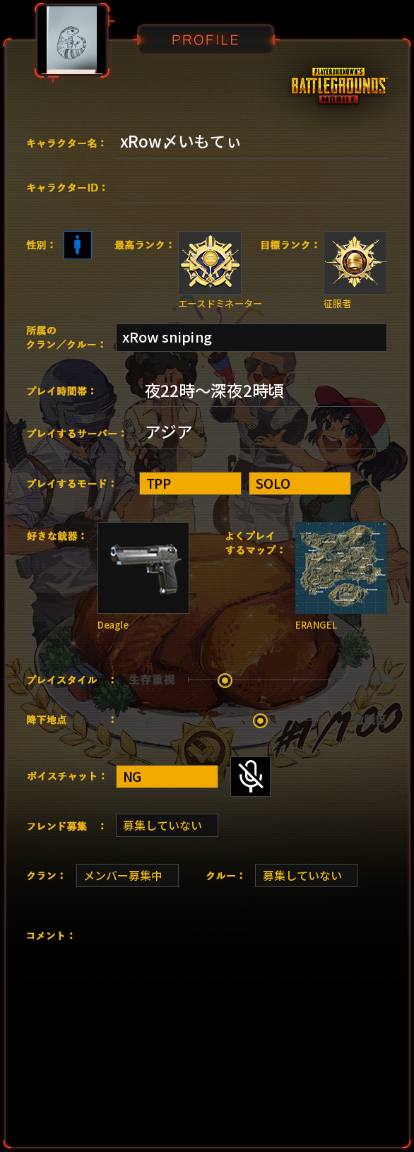 PUBG MOBILE プロフィール
