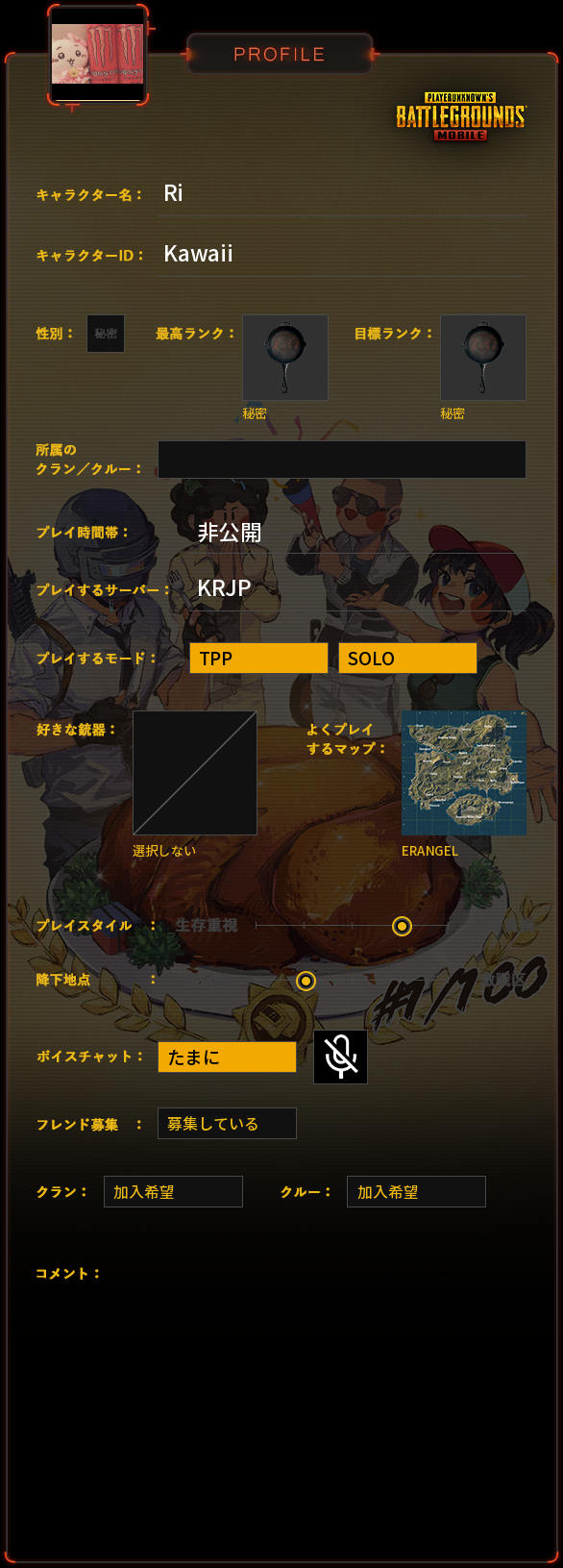 PUBG MOBILE プロフィール