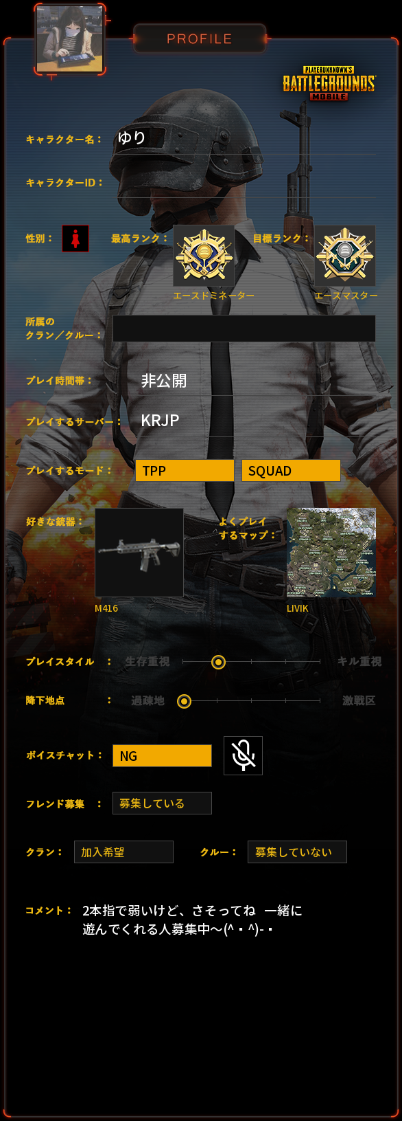 PUBG MOBILE プロフィール