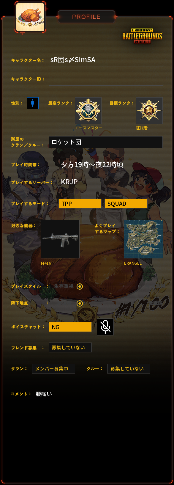 PUBG MOBILE プロフィール
