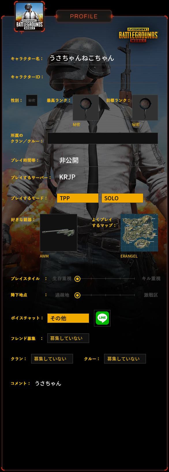 PUBG MOBILE プロフィール