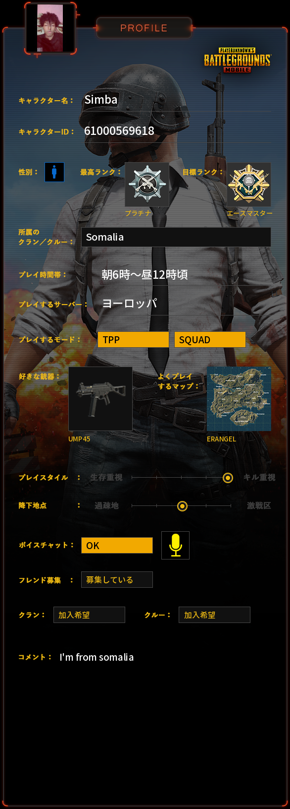 PUBG MOBILE プロフィール